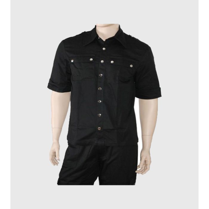 Buy Wholesale Short Sleeve Gothic Military Punk Shirt at the best price. It is short sleeve black cotton made shirt with customized colored buttons. It is made of high-quality and comfortable cotton to wear in summer with skin-friendly comfort. It comes with two pockets on the chest with buttons closer. Customized it today with Global Fashion to grow your brand. We offer low prices and high-quality materials to make the brand grow over the globe.